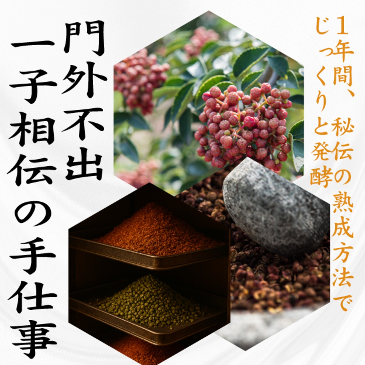 四川の青山椒・ネパールの香り高い山椒・華北の深みある花椒。この三大山椒を、京都の工房で低温熟成。